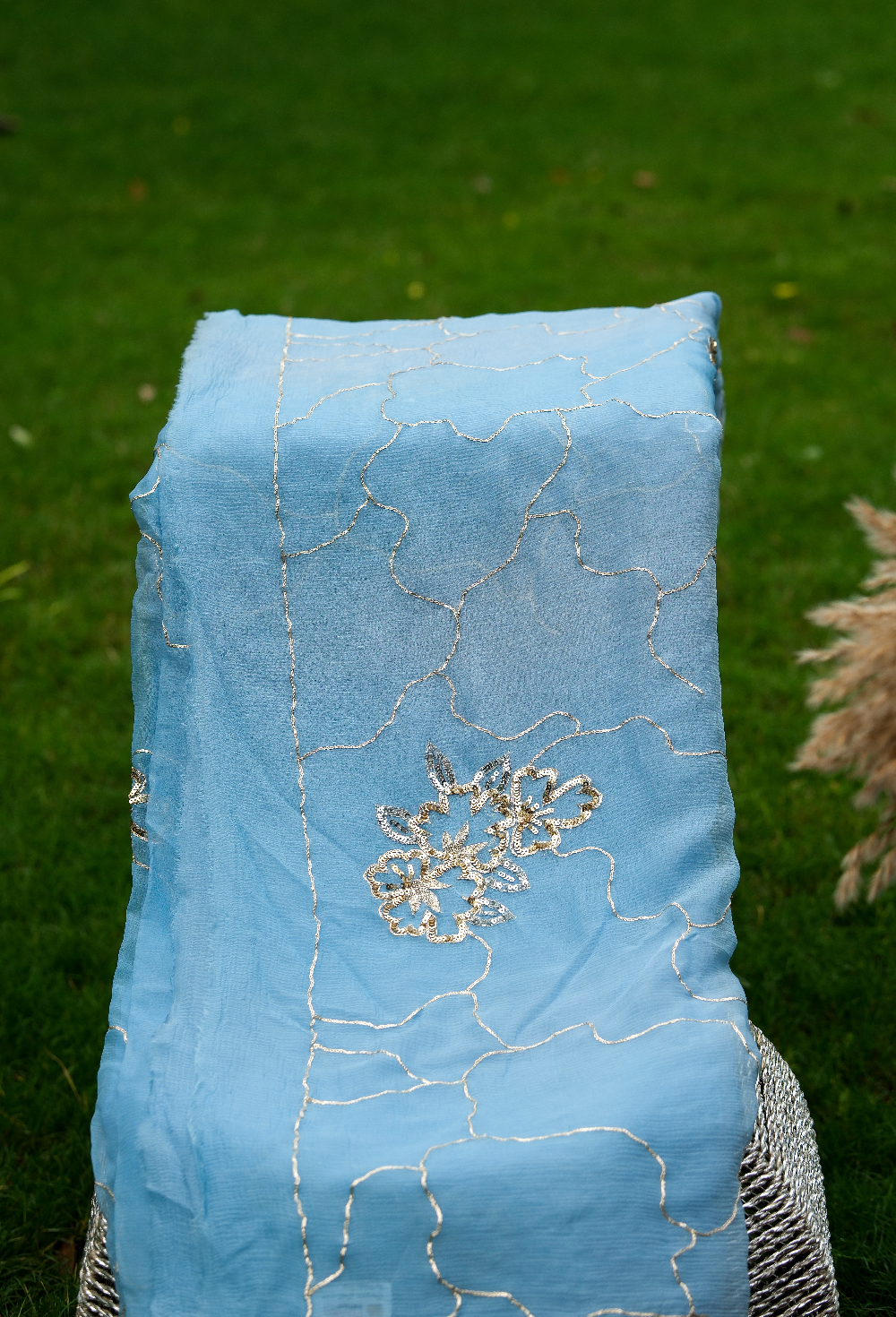 Chiffon Semi Jaal Saree with Sequin & Aari Work