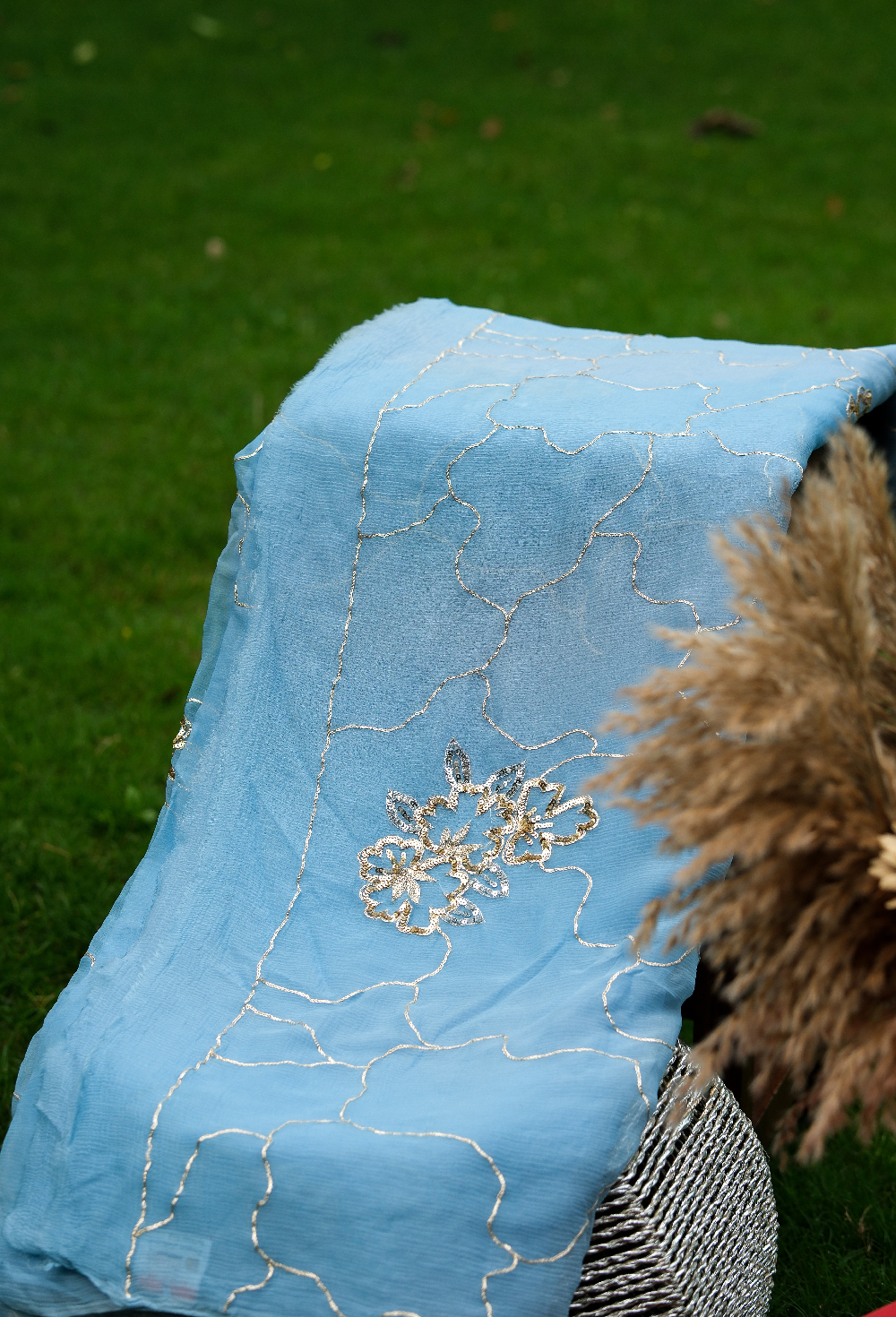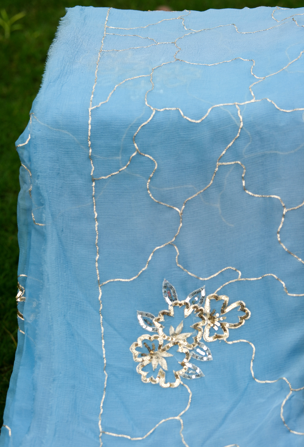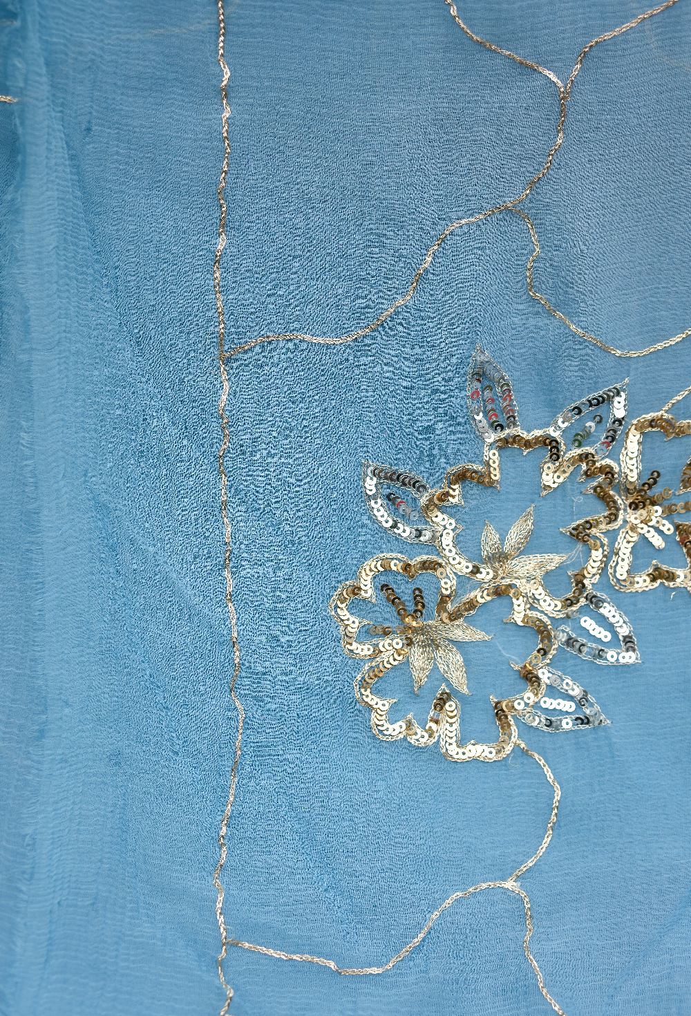 Be the first to review “Chiffon Semi Jaal Saree with Sequin & Aari Work”