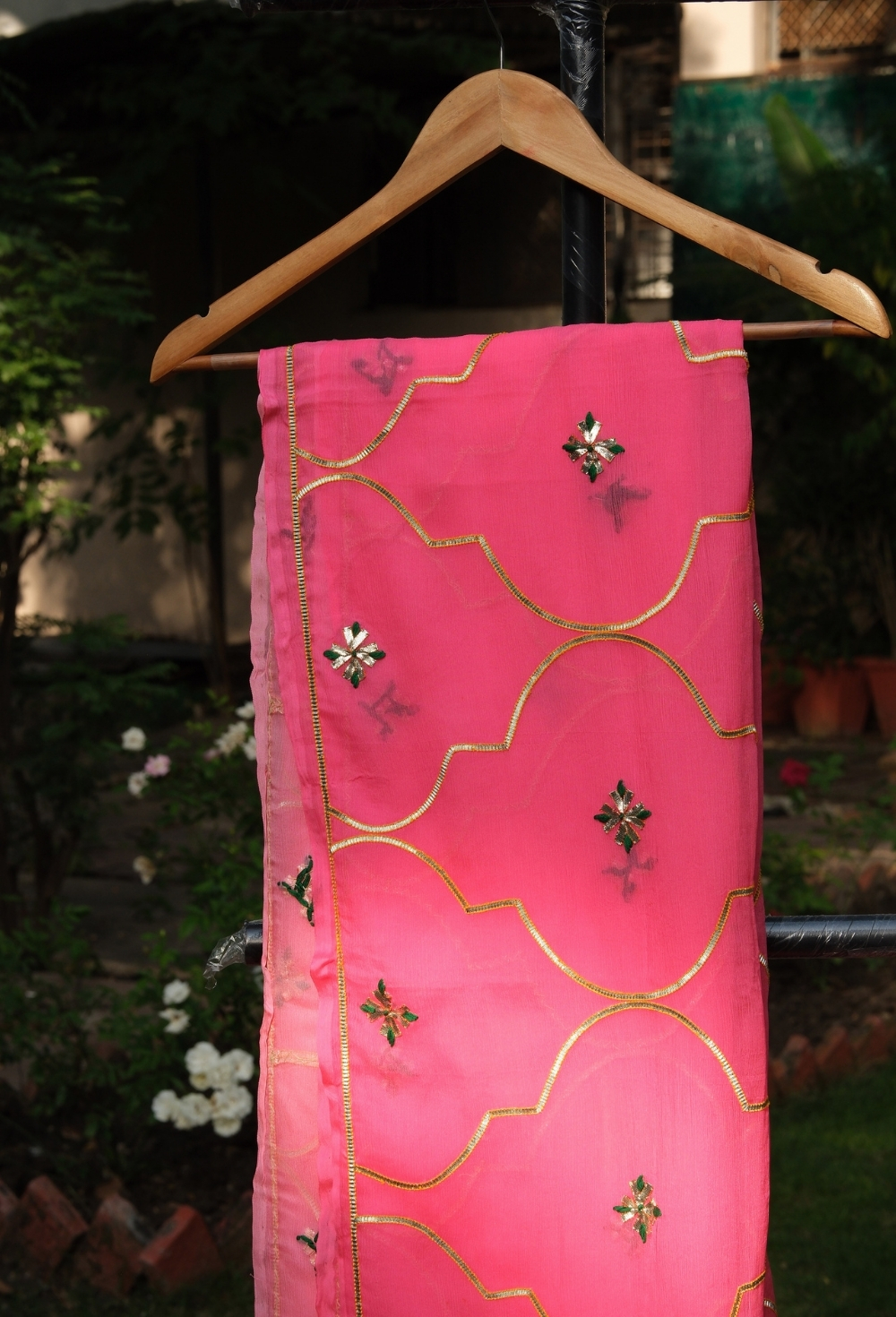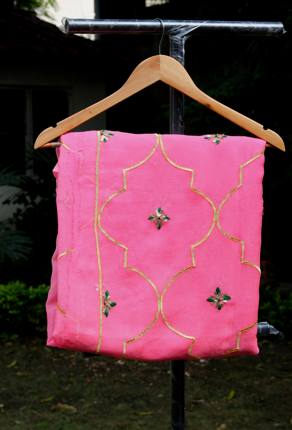 Double Diamond Chiffon Saree with Gota & Sikhya Work