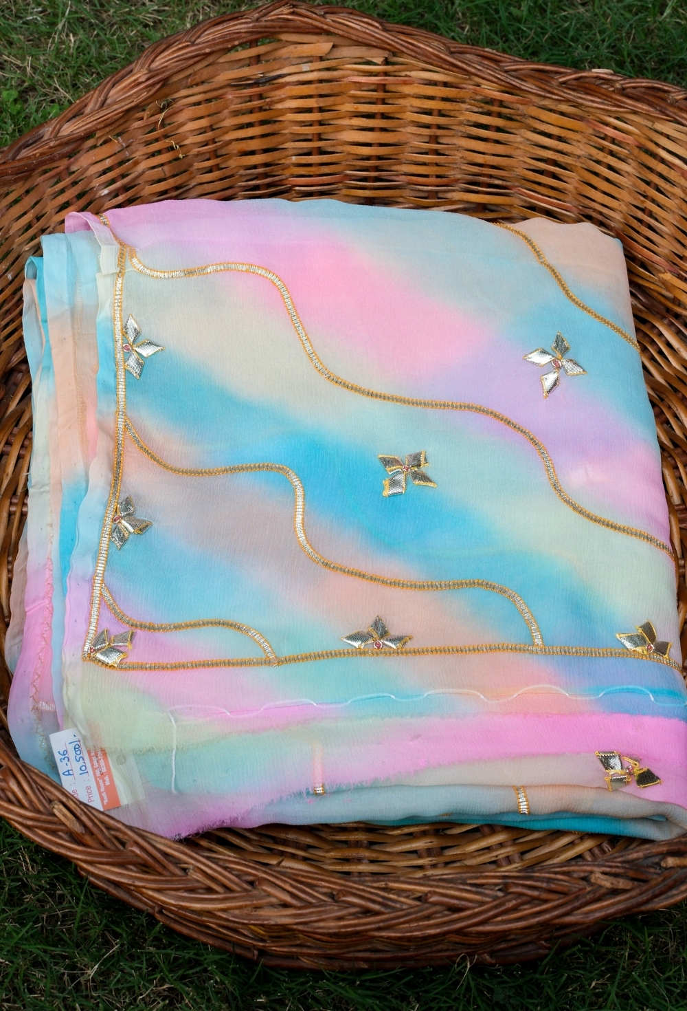 Originating from the royal cities of Jaipur and Jodhpur, the Leheriya technique represents waves of happiness. Each saree takes several days to complete — from dyeing to drying and finally hand-embellishing with Gota Patti and Sikhya embroidery. The result is a piece that carries the soul of Rajasthan and the finesse of luxury couture.